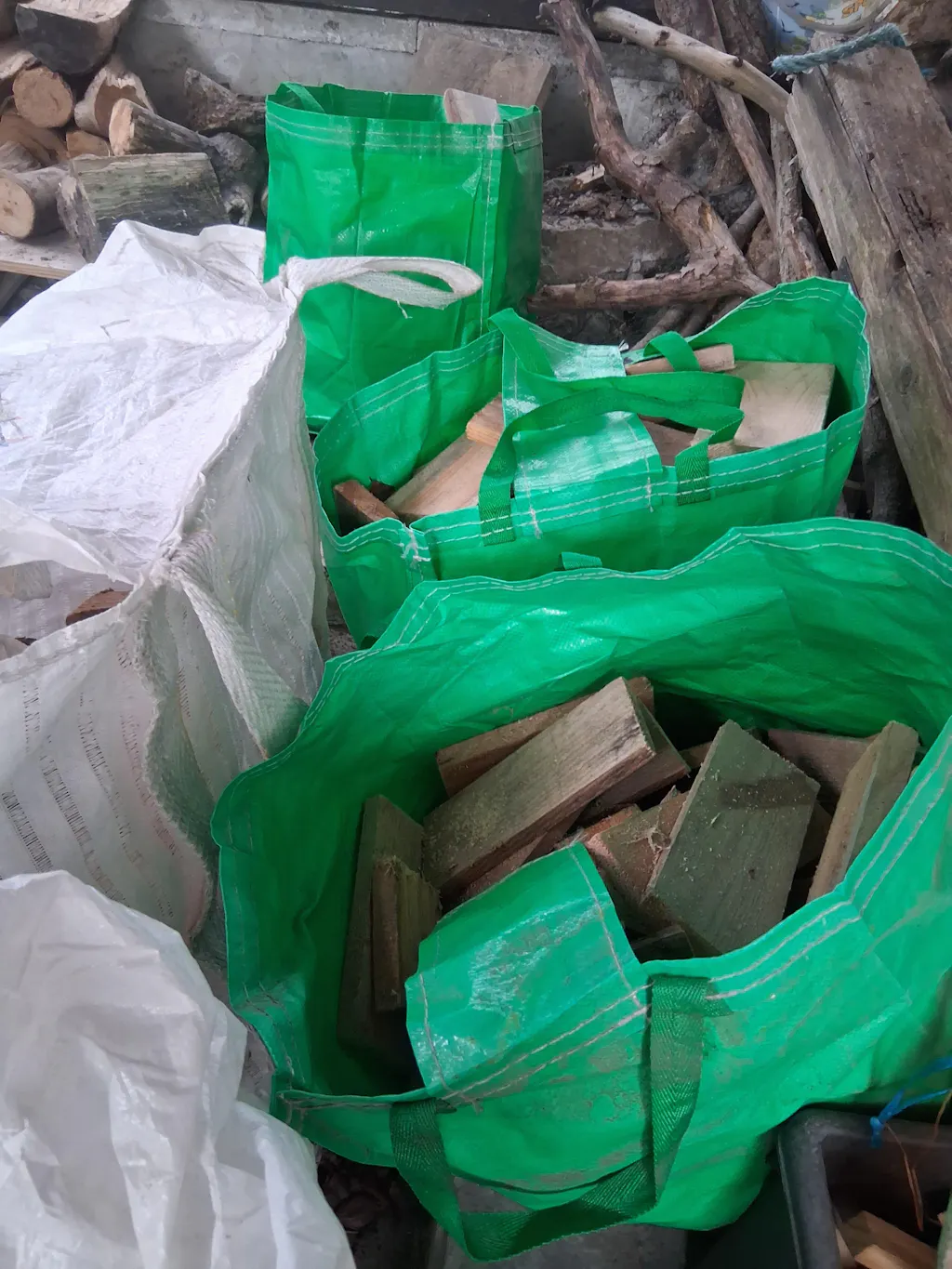 A blue bag of Base Wood. A great addition to kindling, perfect for getting your fire started.